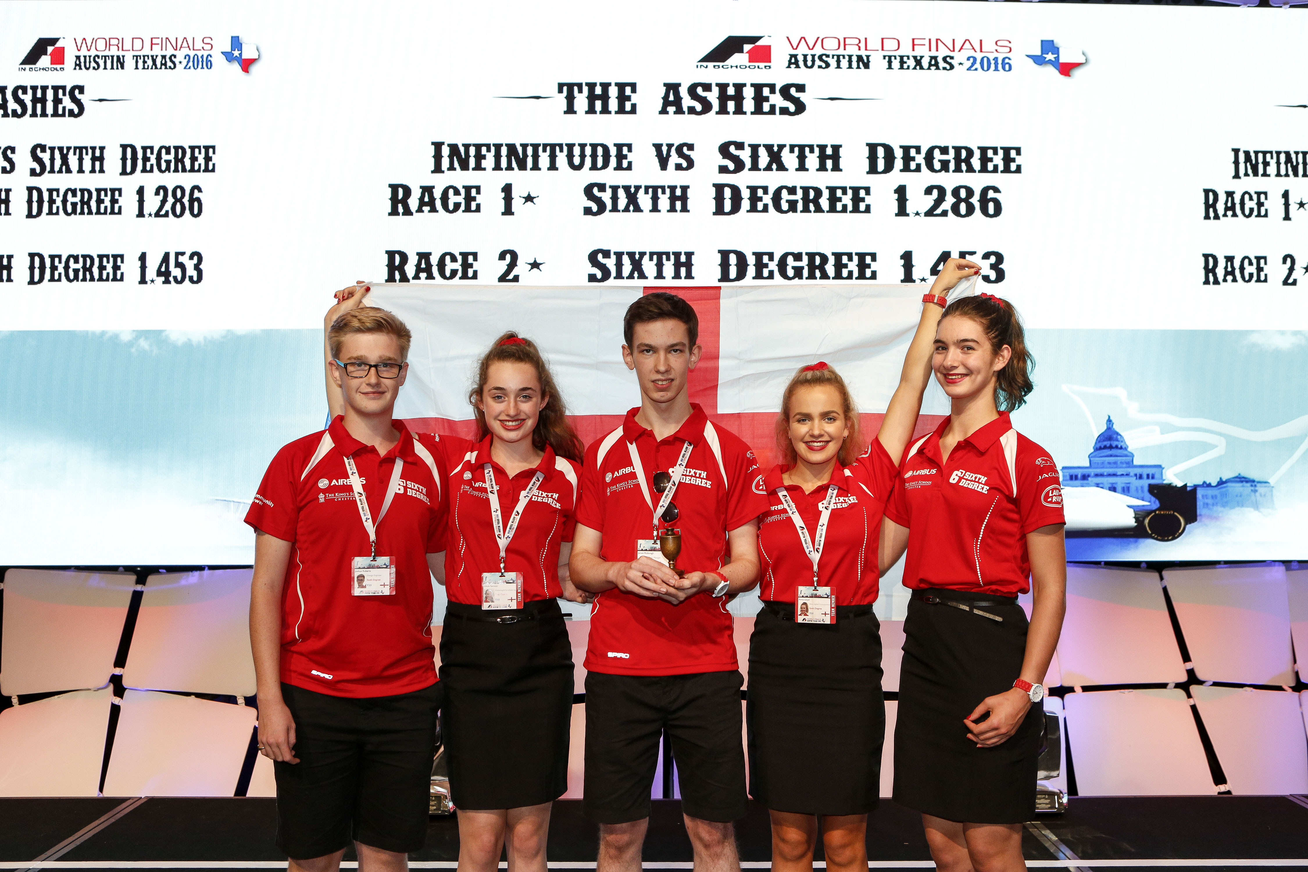 This October 2016, Anna Lloyd’s team Sixth Degree, competed at their first World Finals, which was held in Austin, Texas. The F1 in Schools event, which coincided with the US Grand Prix, began with the registration of the 39 teams and the building of our pit display which demonstrates the design, technology and manufacturing skills, and sponsorship involved in developing our carbon dioxide powered car. The challenging 4 day competition involved a verbal presentation to a panel of judges along with reaction racing and time trails of the car that teams had designed and manufactured over the summer.
